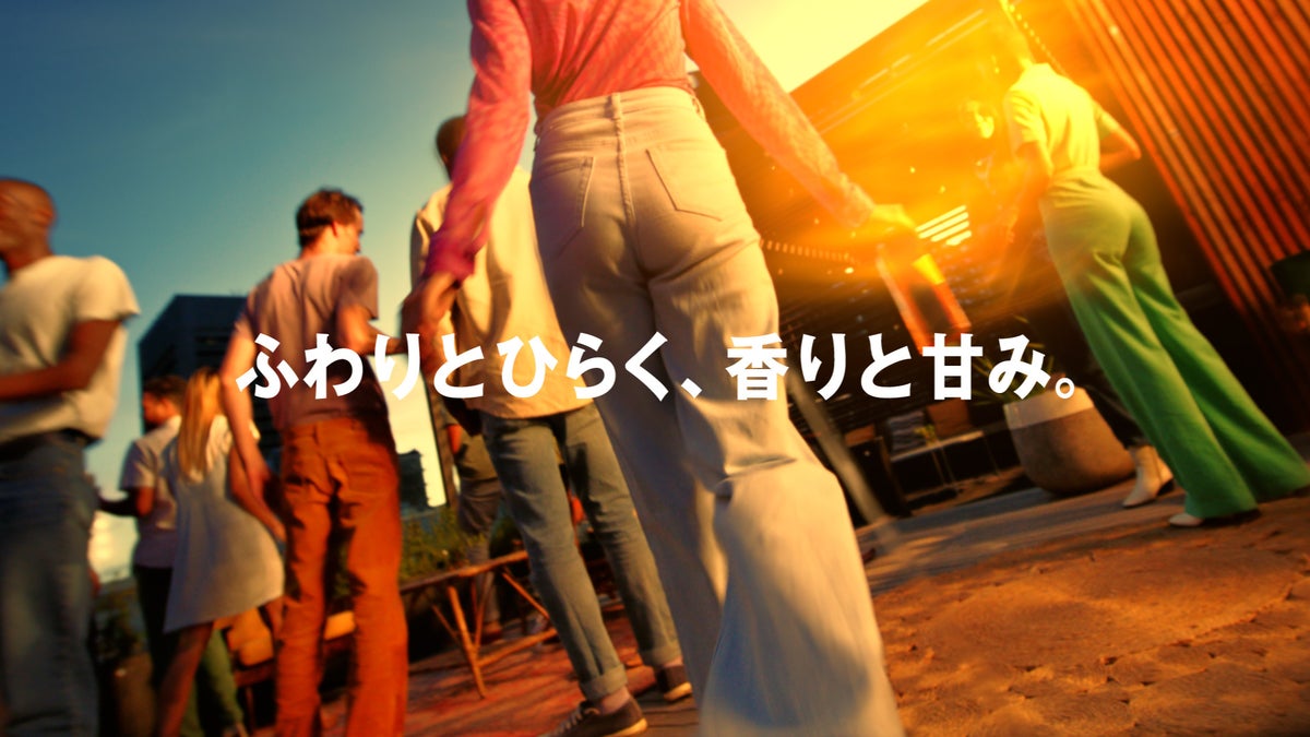陽が沈む前の夕方、街の中にあるビルのテラスで複数の男女が談笑するカジュアルなオケージョンシーンとともに「ブロンド」のWalk Into Magic Hourがはじまります。大切な仲間とグラスを重ねながら、「ブロンド」の「ふわりとひらく、香りと甘み」を楽しむ様子や、「楽しいことは、自分でつくる。」というメッセージを通して、お客様それぞれが自身に立ち返る瞬間を届ける一杯であることを表現しています。