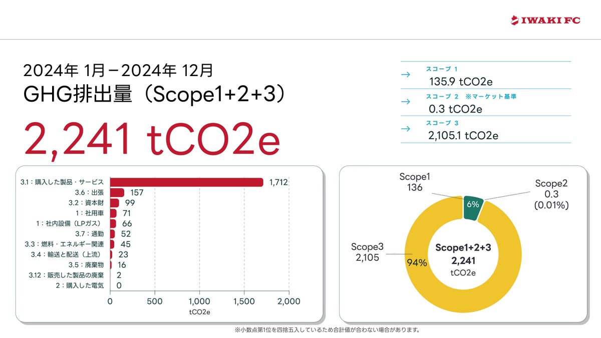 このたび、株式会社いわきスポーツクラブ(以下、いわきSC)は、持続可能な社会の実現に向けた取り組みの一環として、2024シーズン(2024年1月~12月)のクラブ活動に伴い排出された温室効果ガス(GHG)排出量について、株式会社Zeveroの協力のもと算定いたしましたので、お知らせいたします。