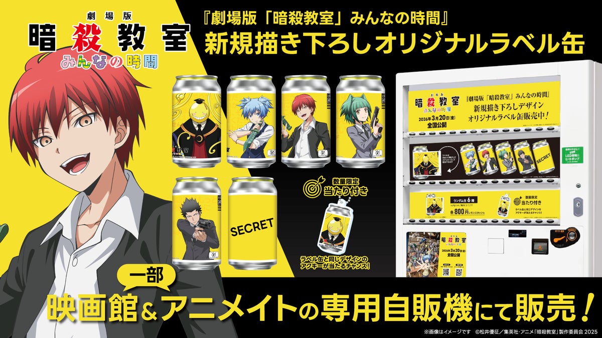 『劇場版「暗殺教室」みんなの時間』新規描き下ろしオリジナルラベル缶を一部映画館・一部アニメイトの専用自販機にて販売いたします。