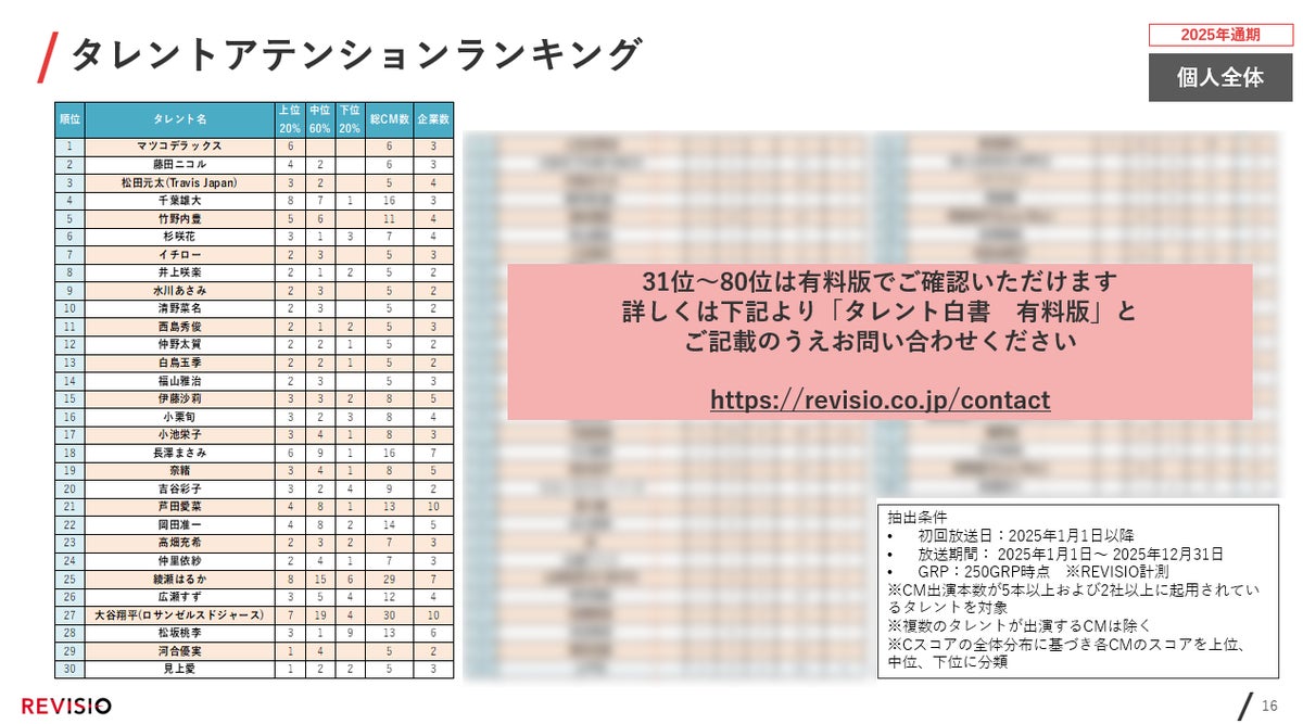 2025年の「タレントCMアテンションランキング」を掲載。1位はマツコ・デラックスさん!