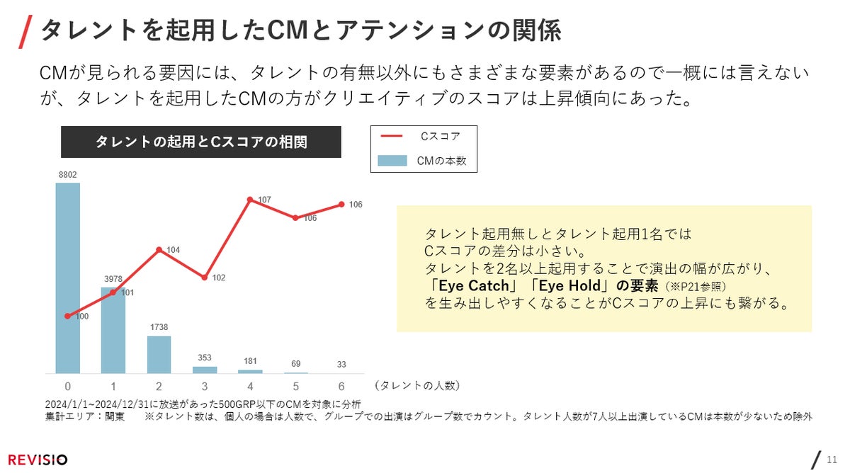 本資料は、REVISIOが独自に取得した「テレビの前にいる人が画面を注視したか」がわかるアテンションデータを基に、タレント出演CMを分析したレポートです 。
