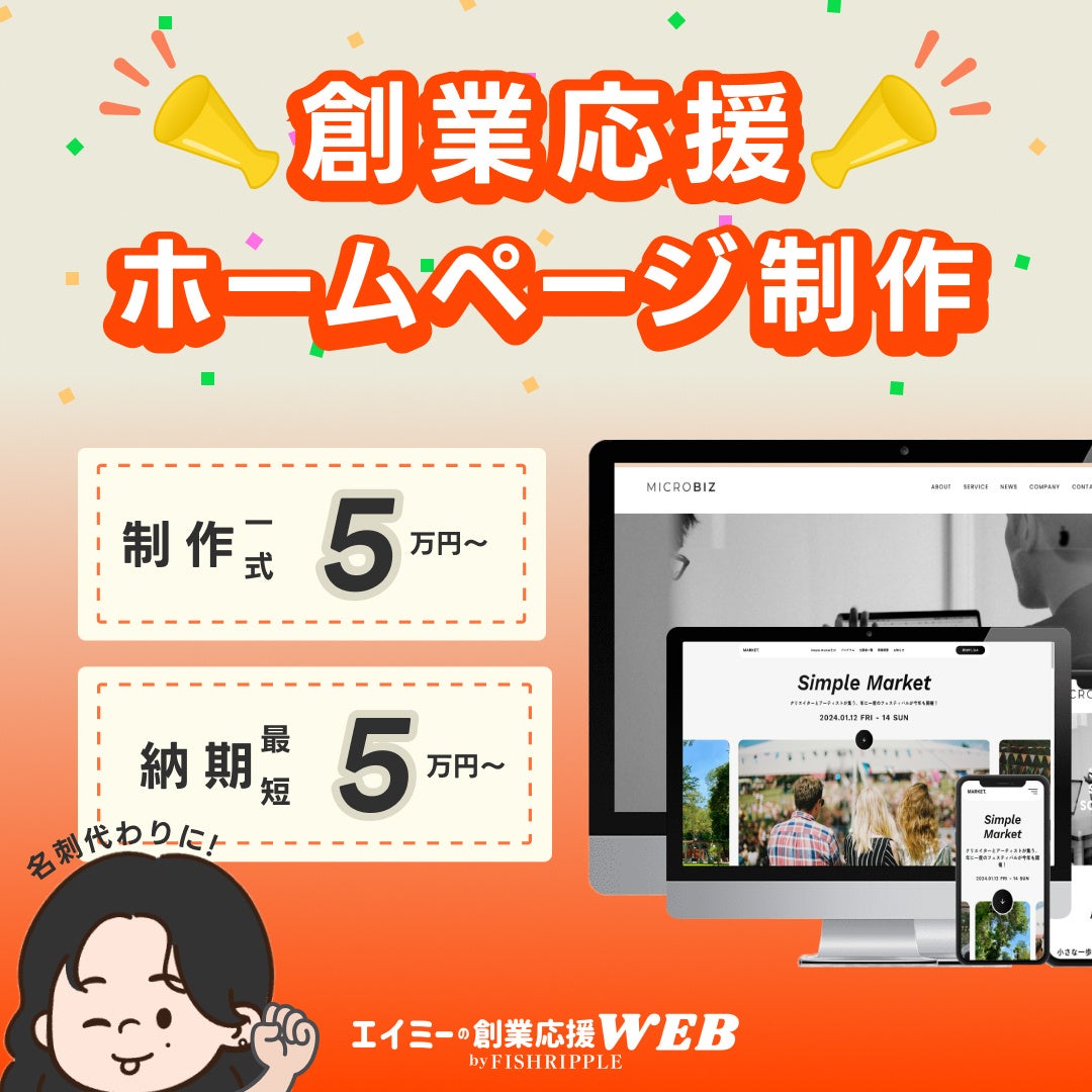 フィッシュリップル株式会社(本社:東京都港区芝、代表取締役:岸本 圭介)は、2026年3月より、創業・開業したばかりの起業家・個人事業主のWEB集客を全力サポートする新サービス「エイミーの創業応援WEB by FISHRIPPLE」を提供開始いたします。