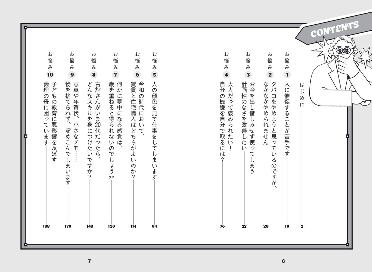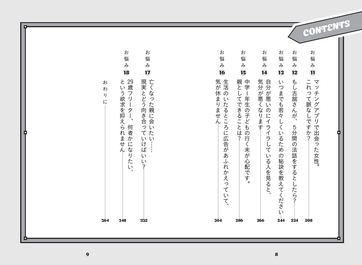 仕事の悩みやお金の使い方、子育てにまつわる話、恋愛相談まで、老若男女さまざまな境遇のリアルなお悩みに、共感できること間違いなし。