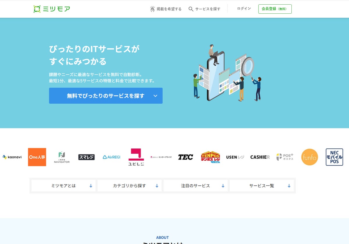 「ミツモア」は、自社に最適なビジネス製品・サービスを簡単に比較・選定できる、日本最大級のオンライン比較サービスです。