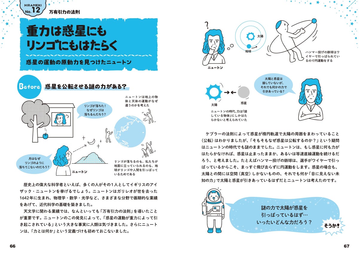 宇宙論や天文学、宇宙開発などについて、先人たちが綿々と築いた豊かな成果を、楽しいイラストを使いながらわかりやすく解説しています。