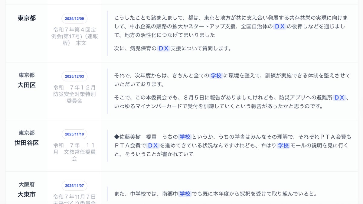 などの行政データをAIで解析・構造化しています。
