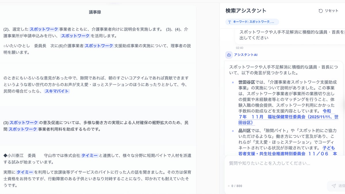 しかし、その多くの情報は、議会議事録、予算資料、審議会資料、政策計画書など、膨大な行政文書として分散して公開されており、必要な情報に辿り着くには専門的な調査や長時間のリサーチが必要です。