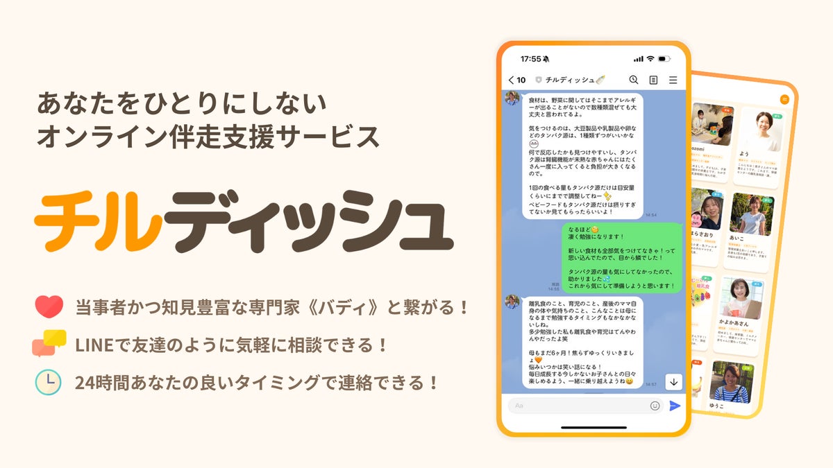 チルディッシュは、月額550円で家族のあらゆるモヤモヤに専門家(バディ)がオンラインで伴走支援するサービスです。