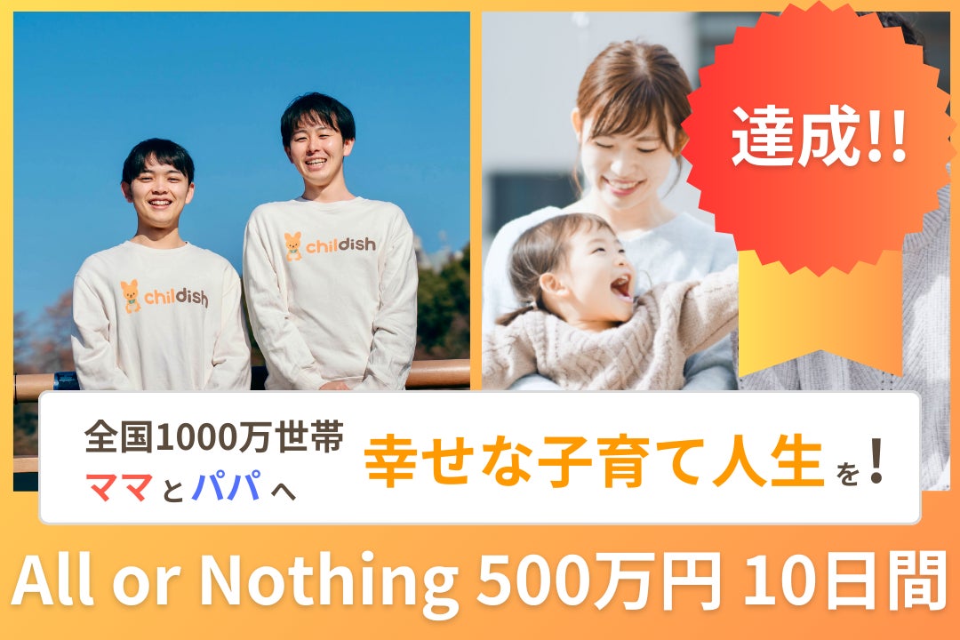 「世界中の全てのこどもが自分を愛せる社会の実現」をビジョンに掲げる株式会社OhMyFamily(所在地:京都市、代表取締役:加治木基洋 / 共同代表:作野充)は、子育てのモヤモヤを解決するオンライン伴走支援サービス「チルディッシュ」の提供先家庭の拡大を目的としたクラウドファンディングを2026年2月19日よりCAMPFIREにて開始し、2月27日に達成したことをお知らせします。