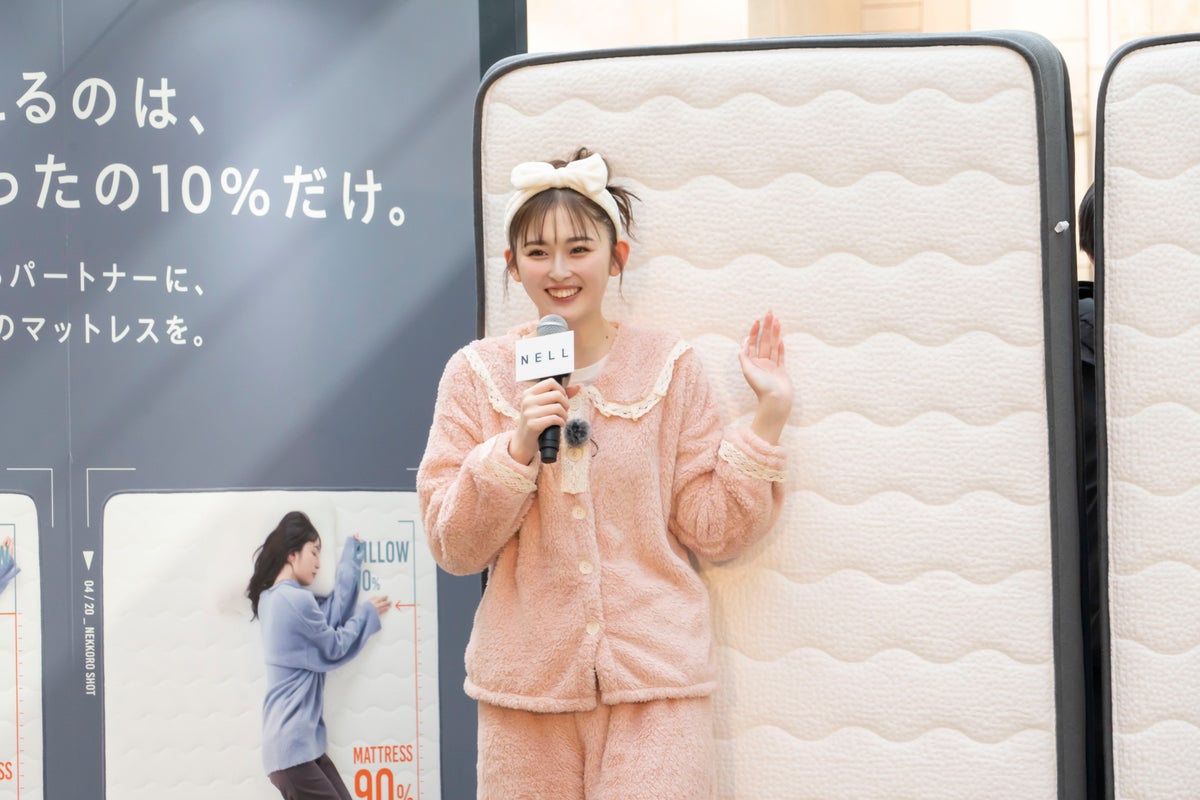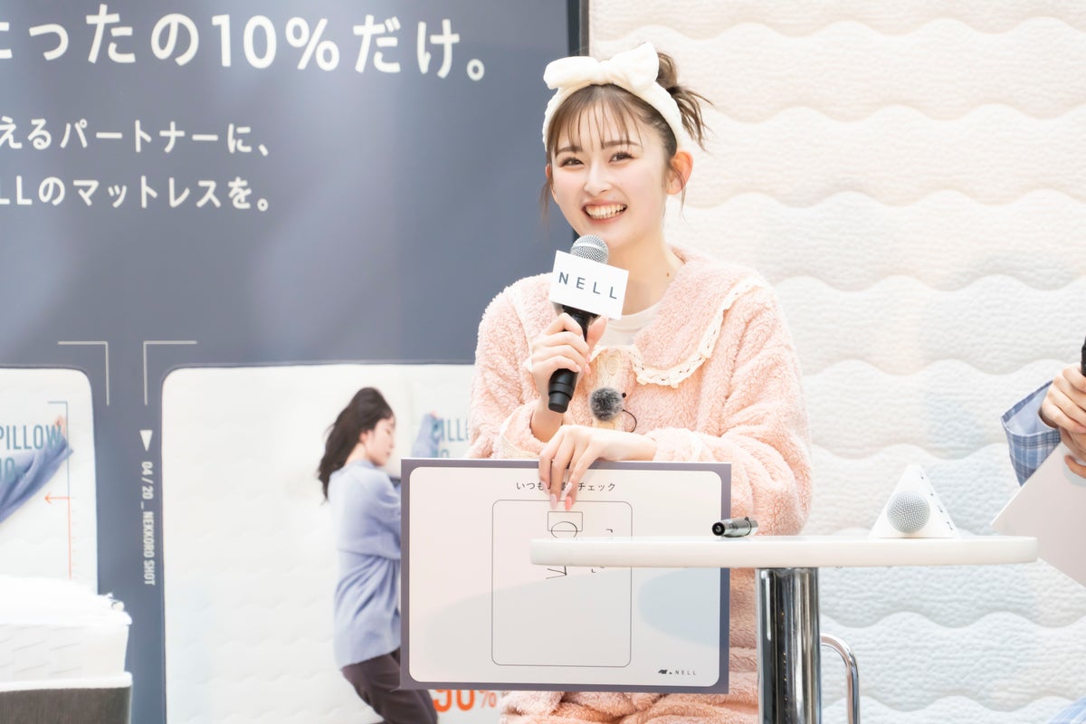イベント前に「寝っころプリ by NELL」を体験した町田さんは「NELL マットレスがすぐに身体の体重を分散させてくれるから寝返りしやすかった」とコメントし、「このマットレス、ガチでえぐいぞ」と大絶賛でした。