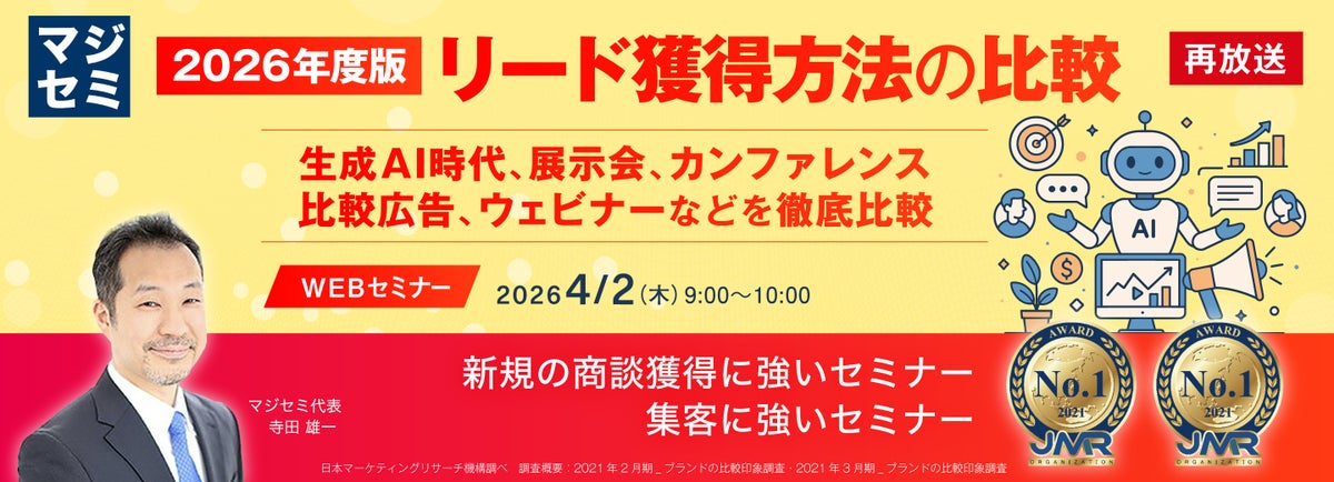本セミナーでは、展示会、カンファレンス、比較広告、ウェビナーといった主要チャネルを俯瞰し、それぞれの特徴と活用シーンを整理します。生成AI時代におけるリード獲得の現状を踏まえ、各手法の長所・課題を比較検討することで、自社に最適なチャネル戦略を考える機会を提供します。