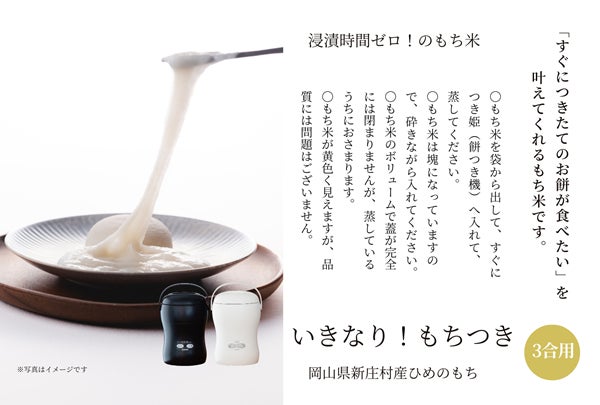 日本初!? 浸漬不要!浸漬時間ゼロですぐに餅がつける!「いきなり!もちつき」を新発売