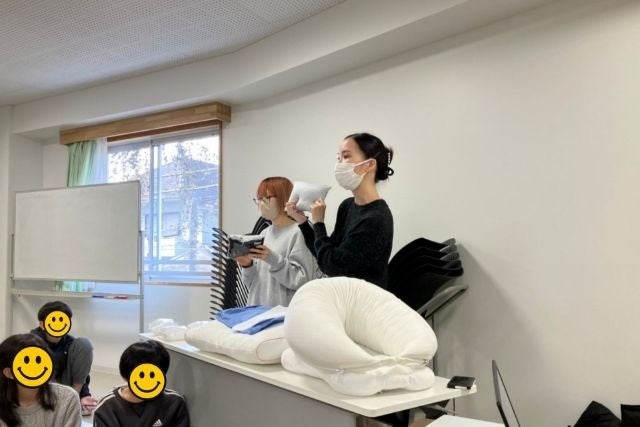 前回の授業で枕としての精度を高めるためのアドバイスを受け、最終的に子供たちがまとめあげた内容発表会に参加して参りました。どのような人に使ってもらい、どのように感じて欲しいかを具体的に考え、それらを起点とした商品開発をした結果、実際に使用したらどうだったのか?の意見を募り改善箇所の抽出と今後の改善案を練ってもらいました。