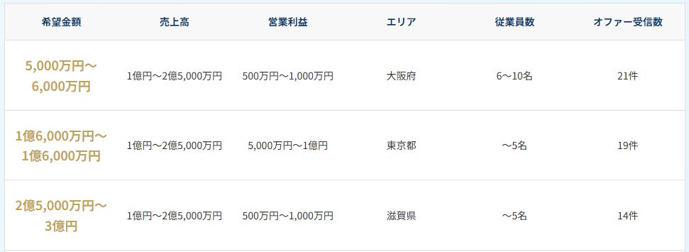 - 業種・エリア・売上の3つを選択するだけ(匿名・書類不要)