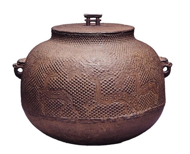 重要文化財 芦屋霰地楓鹿図真形釜 室町時代・15世紀 [通期展示]