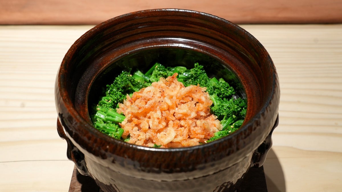 春のランチコースでは、桜海老を使用した土鍋ご飯をご用意。ほんのりとした桜色の彩りと香ばしい香りが、春の季節感を感じさせる一品です。