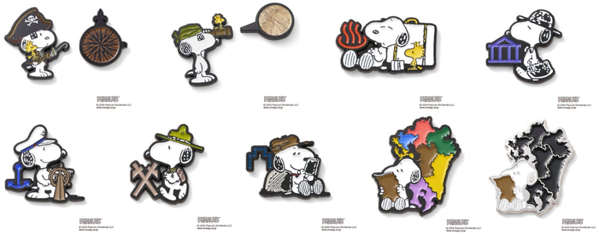 手持ちのスヌーピーグッズと組み合わせたり、バッグや帽子、アウターのアクセントにしたりして楽しめるピンバッジです。「パイレーツ」は、海賊船のキャプテンのスヌーピーと乗組員のスヌーピーの2種類(2個セット)、「地図記号」は、5種類。 「九州地方」は、カラーとモノクロの2種類です。