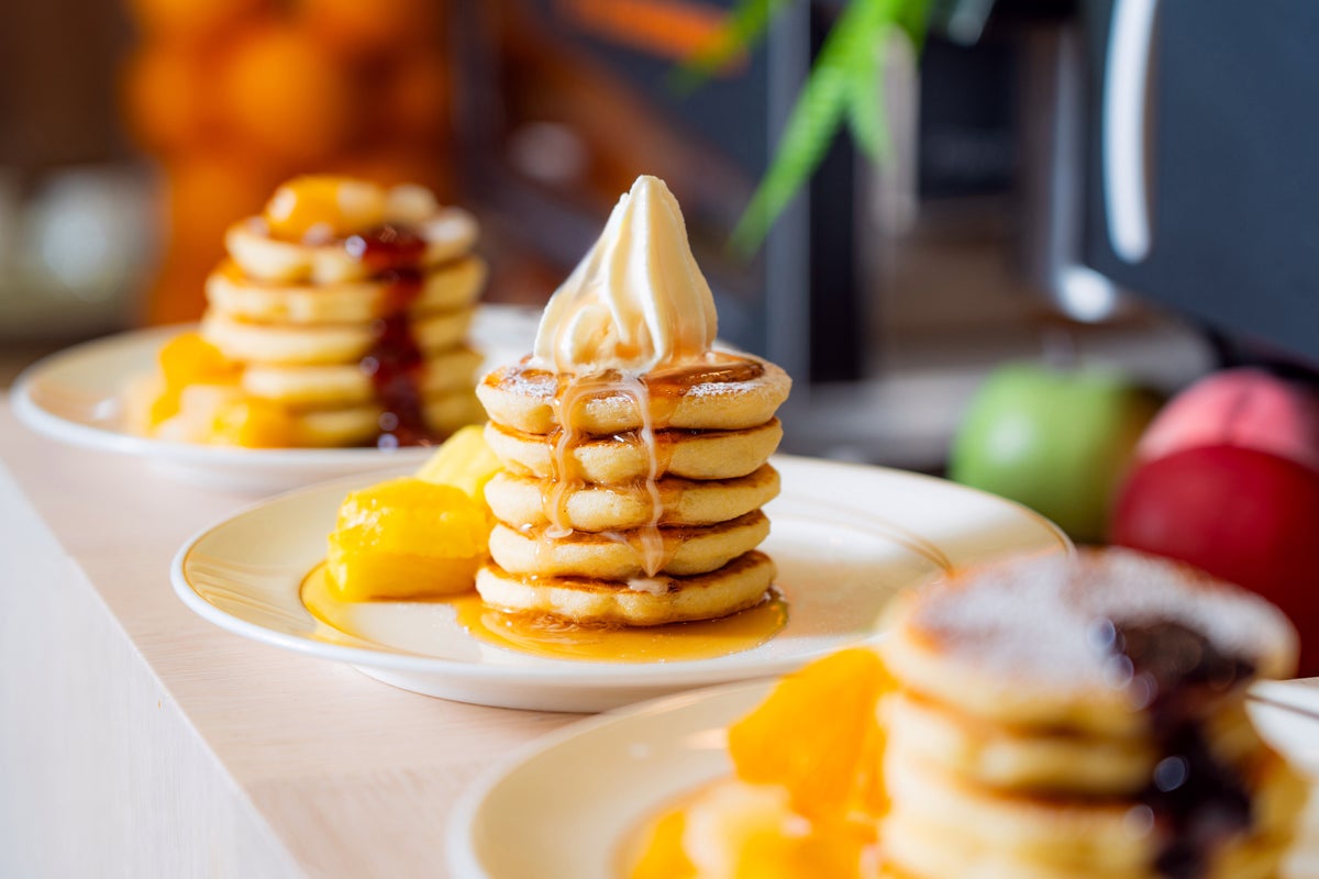 女性やお子様にも人気のスイーツは、彩り豊かな春のお花のように、華やかなフルーツを使用したスイーツがラインナップ。ランチタイム限定でフルーツコーナーをご用意し、フレッシュなフルーツをそのままお召し上がりいただくことはもちろん、お好みのフルーツ、ソフトクリーム、ソースやトッピングで自分だけのクラフトパンケーキやパフェづくりをお楽しみいただけます。