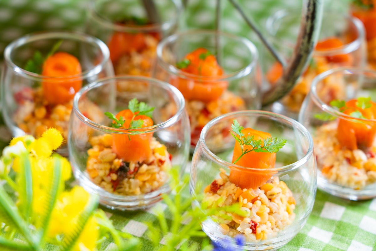 レンズ豆と彩り野菜 トラウトサーモンのタブレ