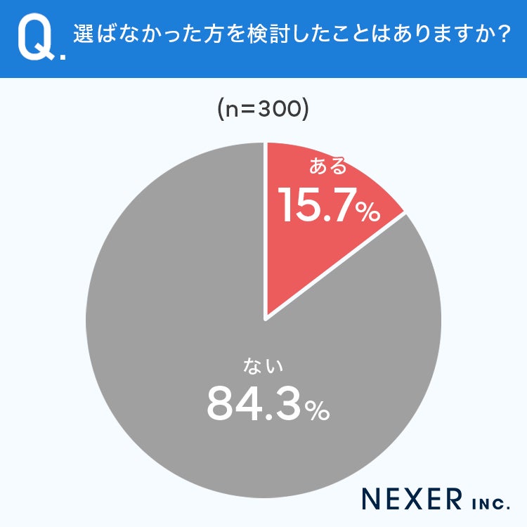 ■15.7%が「選ばなかった方を検討したことがある」と回答。断念の最大理由は「費用」