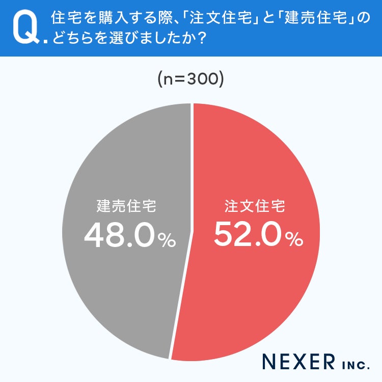 その結果、注文住宅が52.0%、建売住宅が48.0%という結果になりました。