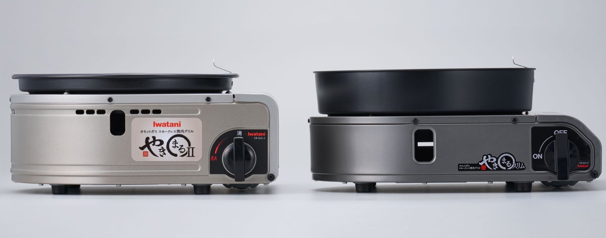 従来品“やきまるII”(左)と“やきまるスリム”(右)の高さの比較