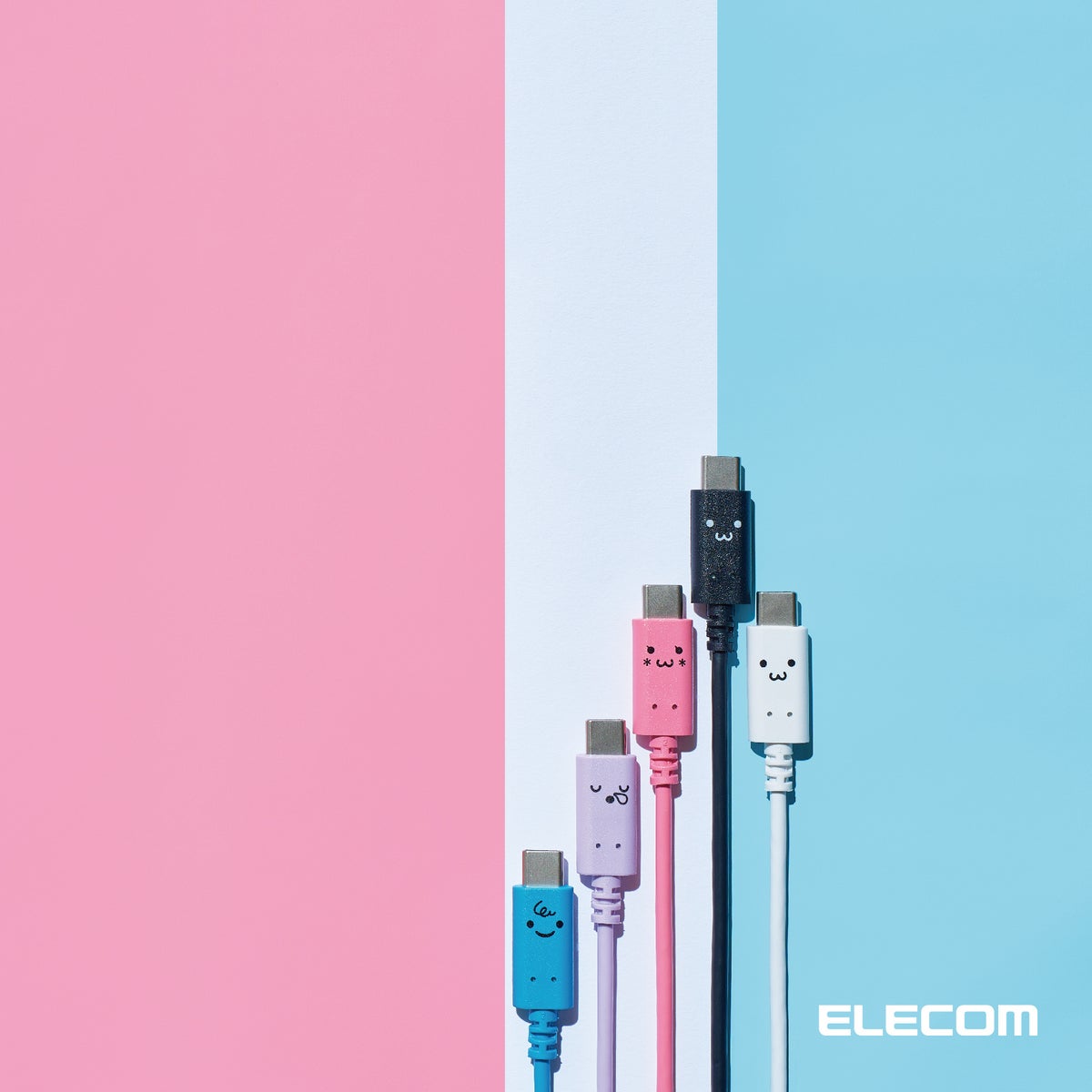 USB Type-C(TM)ケーブルでは、カラーによって表情が異なるデザインを採用しています。くろちゃん(ブラック)、トキメキ(ピンク)、スリーピー(パープル)、ベイビー(ブルー)をラインアップ。いつもの充電時間が少し楽しくなる製品です。