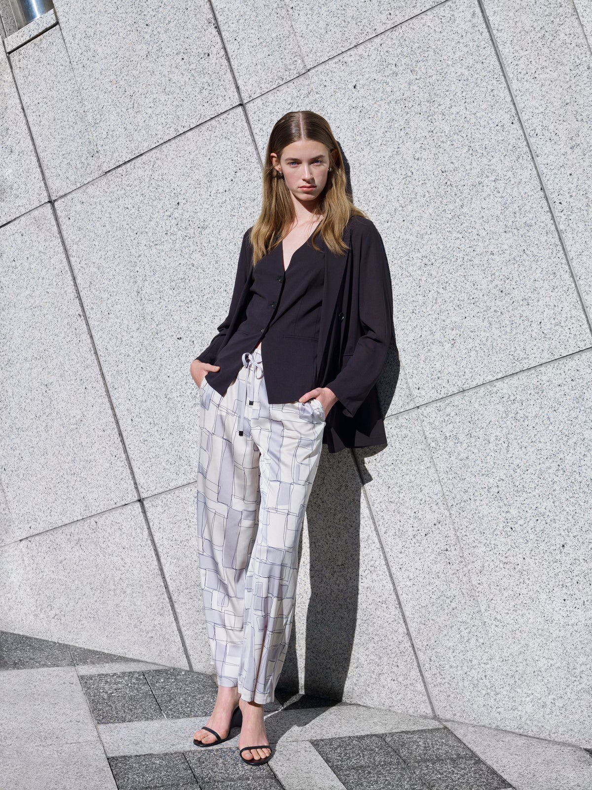 今季のコレクションでは、トピックカラーのイエローをアクセントにしたカーディガンをはじめ、ジャケットスタイルや柄物パンツなど、洗練された印象のアイテムが多数ラインアップ。