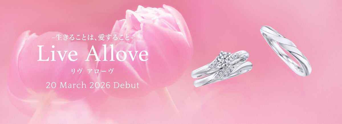 日本最大級の成約数を誇り、全国に68店舗を展開する日本初*ブライダルジュエリー専門店「銀座ダイヤモンドシライシ」(運営:株式会社NEW ART、東京都中央区、代表 濱野えり)は、2026年3月20日(金・祝)より、新作ブライダルリング「Live Allove(リヴ アローヴ)」を全国の銀座ダイヤモンドシライシ店舗にて販売開始いたします。