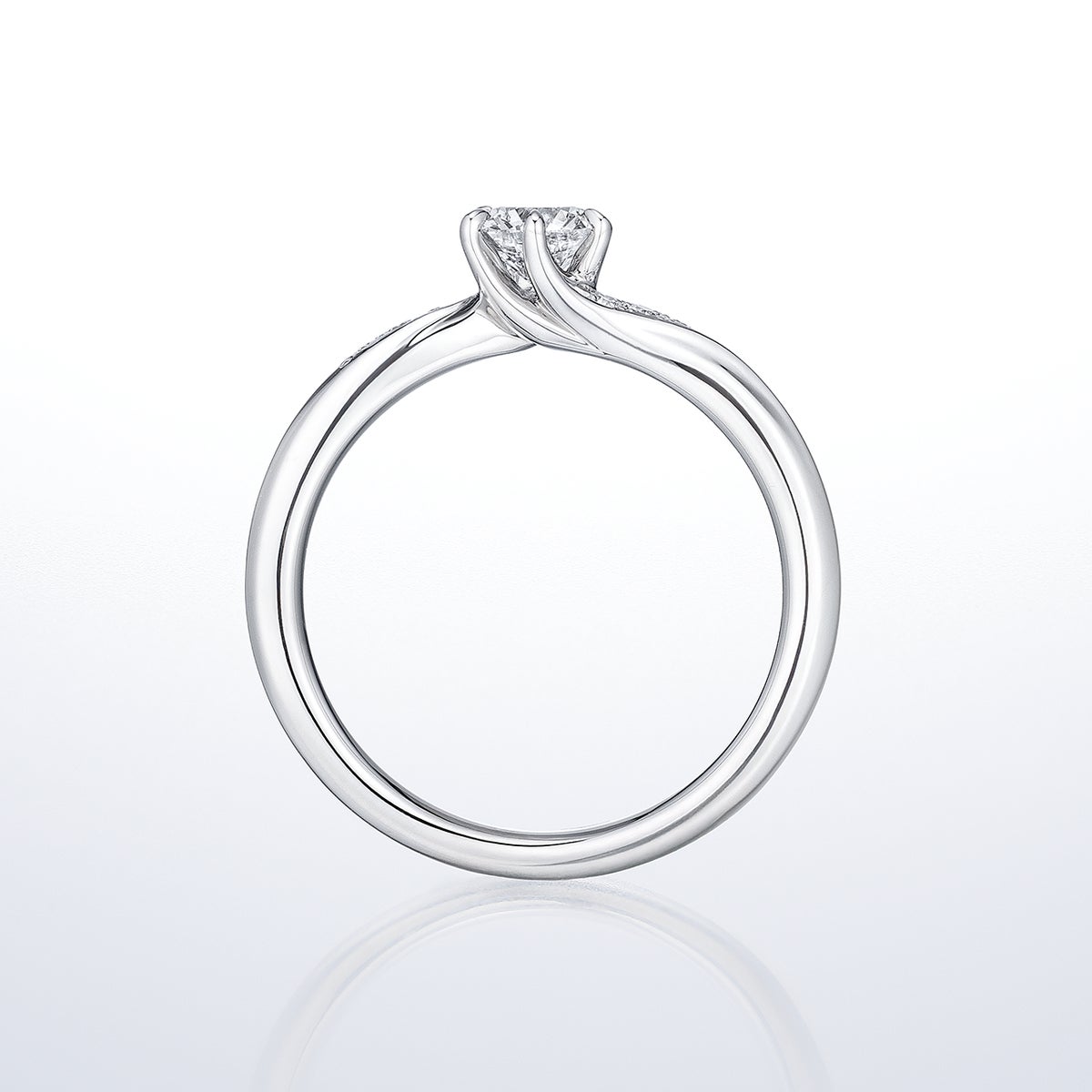 ふたりの想いが柔らかな愛に包み込まれるようにプラチナの曲線は優しくダイヤモンドへ向かいます。センターダイヤモンドに光が当たるセッティングで、ふたりが選ぶ純粋なダイヤモンドがより一層強く美しく輝きます。