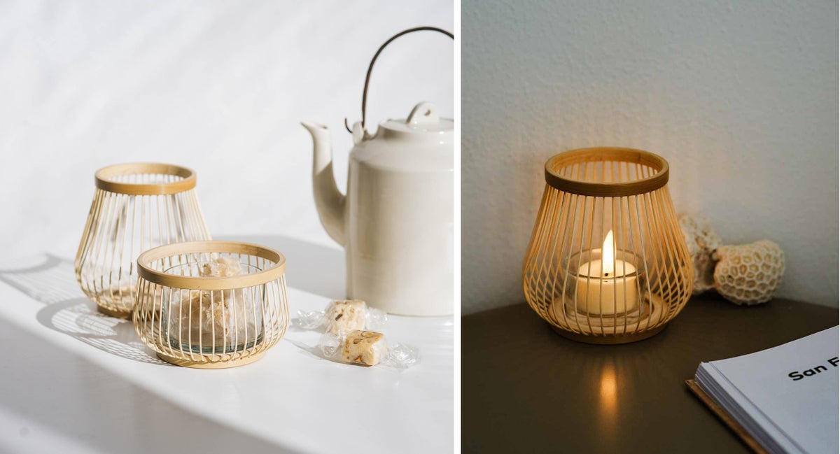 完成品は小物入れにしたり、小びんを入れて花生けにしたり、使い方はいろいろ。LEDライトなど明かりを入れて陰影を楽しむのも素敵です。大切な方への贈り物にしても。