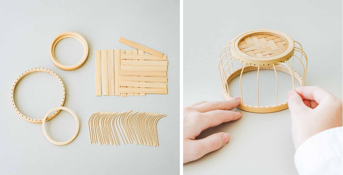 本キットには、職人の手作業で作られた丸い竹ひごや熱を当てて曲げた竹の輪をセット。「組む」工程をご自宅で体験いただけます。繊細な竹ひごの線が端正な形を成していく、心まで整うような静かな時間。何かと落ち着かない新生活の季節に、手づくりの時間がくれる安らぎを感じられ、完成したインテリアは暮らしの気分に清々しい空気と新鮮さを届けてくれます。暮らしに溶け込む4つの小物を仕立てながら、受け継がれてきた伝統と職人の技を感じられるキットです。