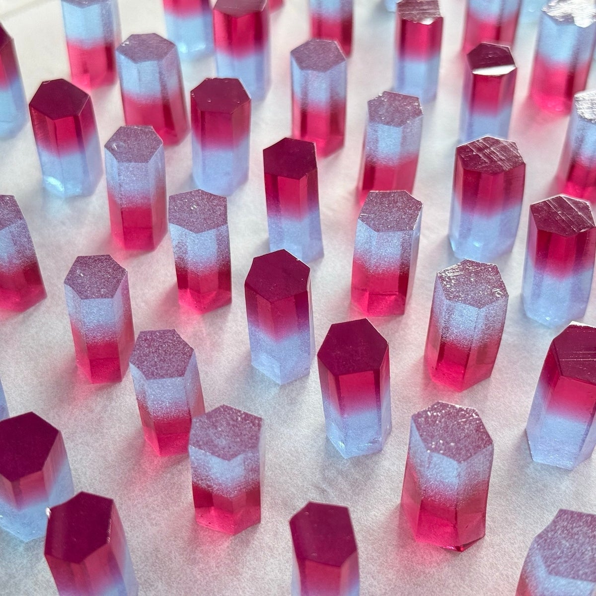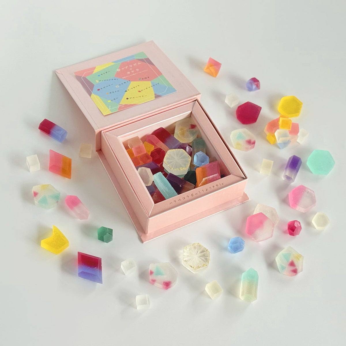 プリズムの光をイメージしたグラデーションの琥珀糖が沢山入っている