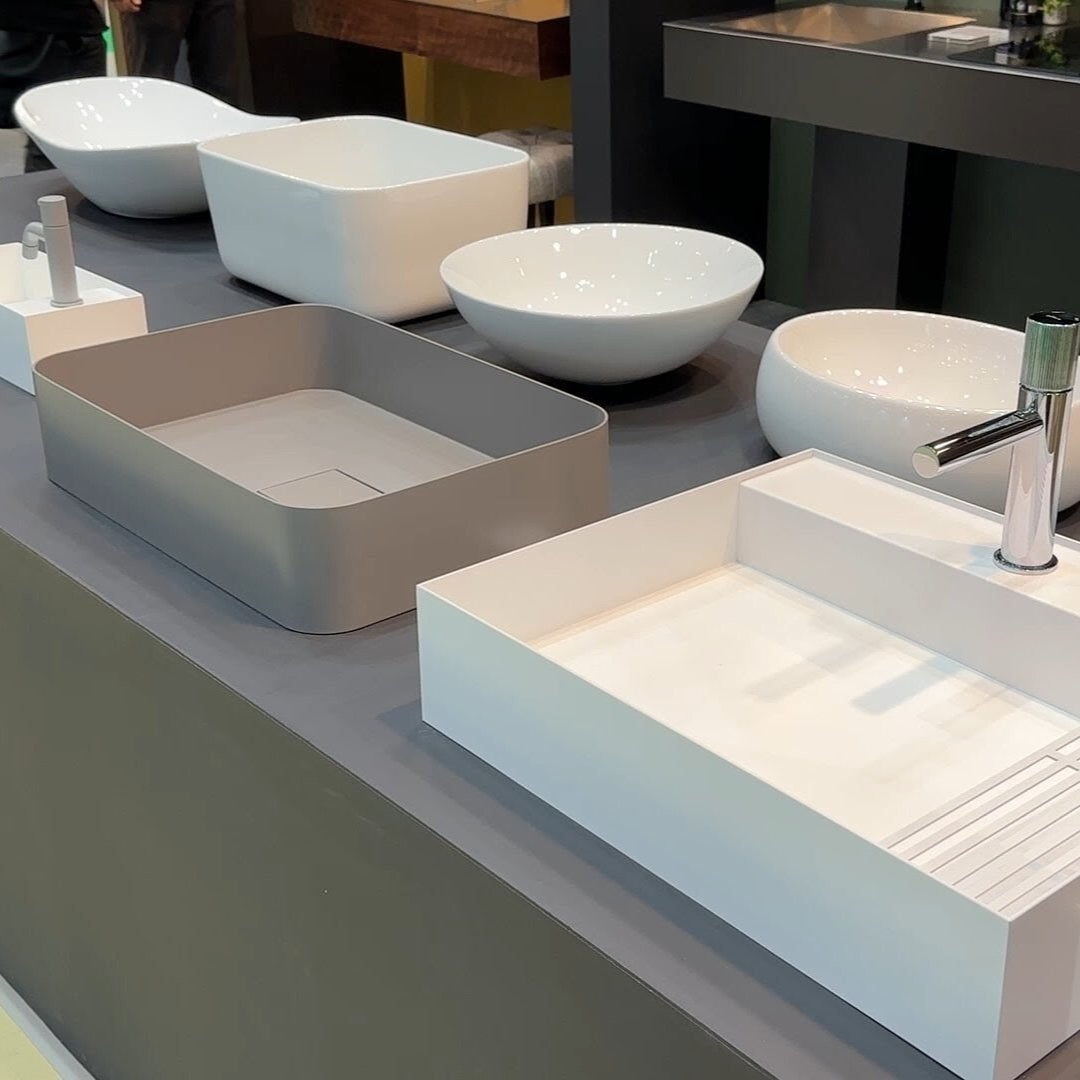 デザイン洗面ボウル:iFデザイン賞受賞の『ヌアール』、グッドデザイン賞受賞の『リニエッタ』をはじめ、角型・丸型など多彩なラインアップを展示しました。