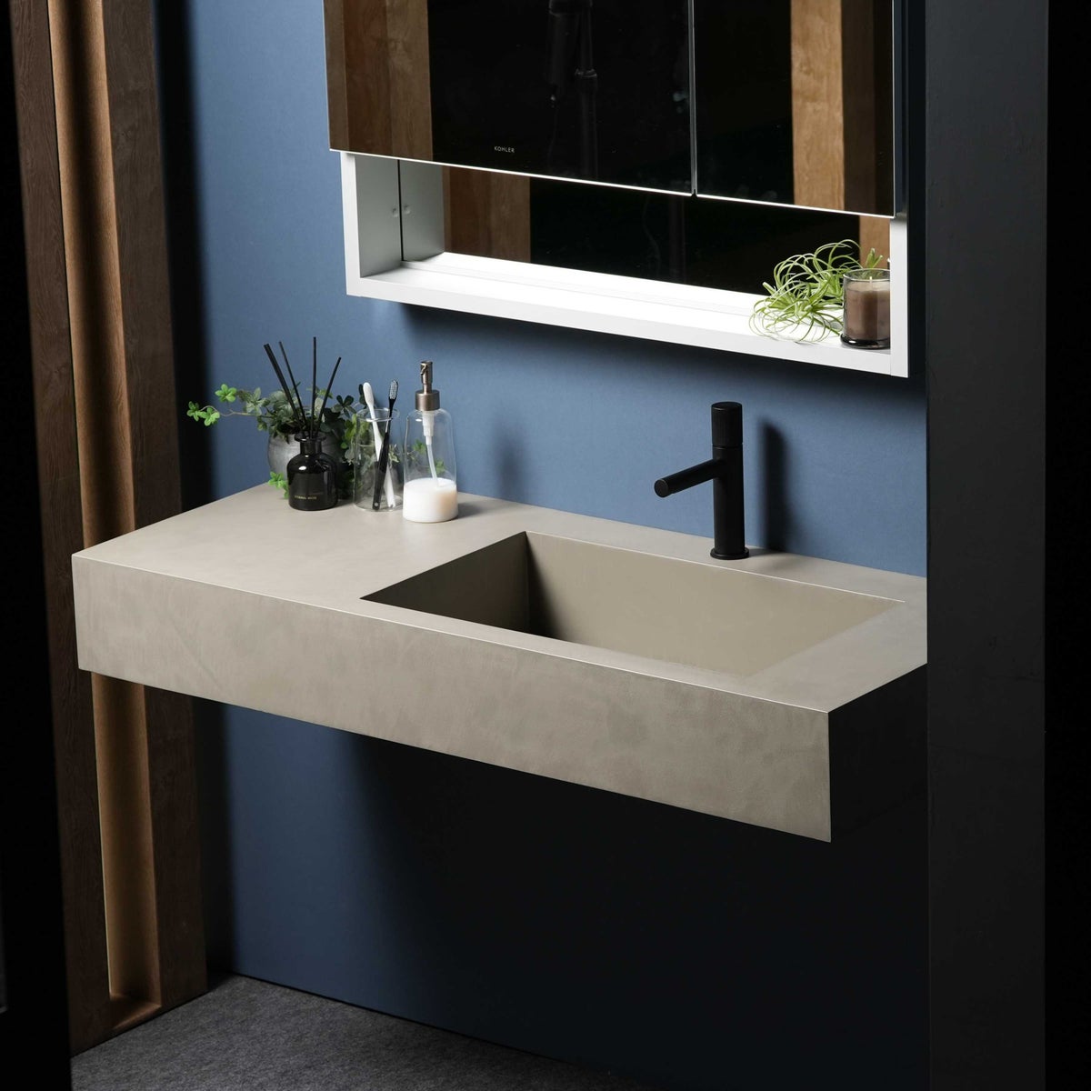 モルタル調の一体感ある洗面提案