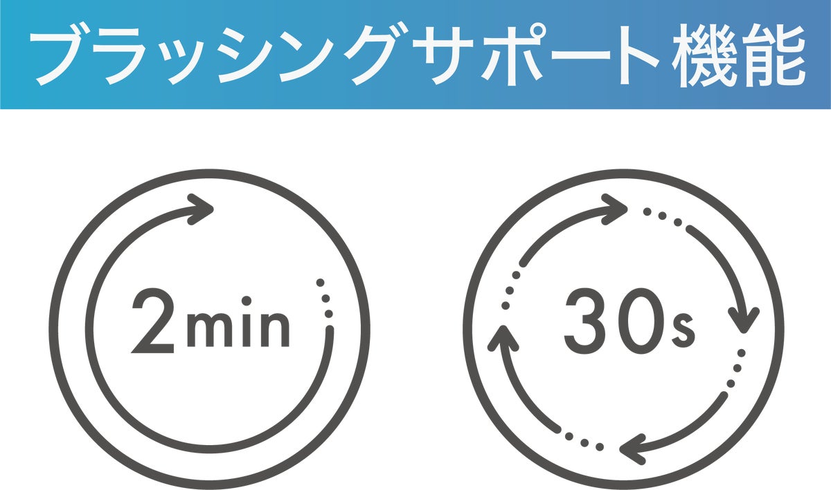 歯磨きの目安とされる2分間のブラッシングを基準に設計した「ブラッシングサポート機能」を搭載。
