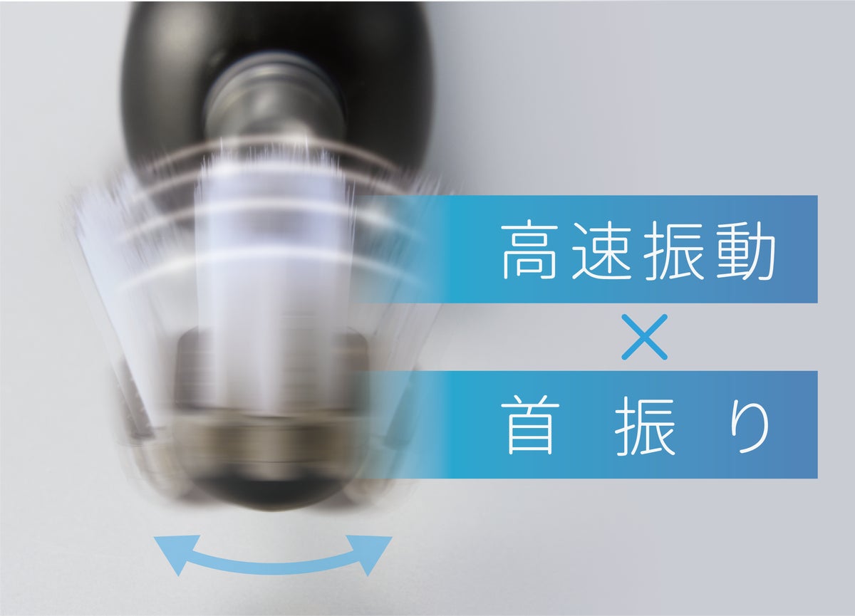 「高速振動」に加え、ブラシヘッドが左右に動く「首振り」機構を搭載。2つの駆動で、歯の表面だけでなく、歯間や奥歯などの磨きにくい部分にも効率よくアプローチし、しっかりとしたブラッシングを実現します。