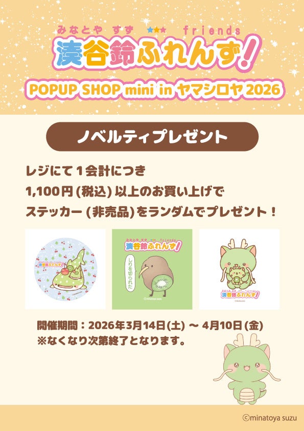 イベント名称:「湊谷鈴ふれんず! POPUP SHOP mini in ヤマシロヤ 2026」