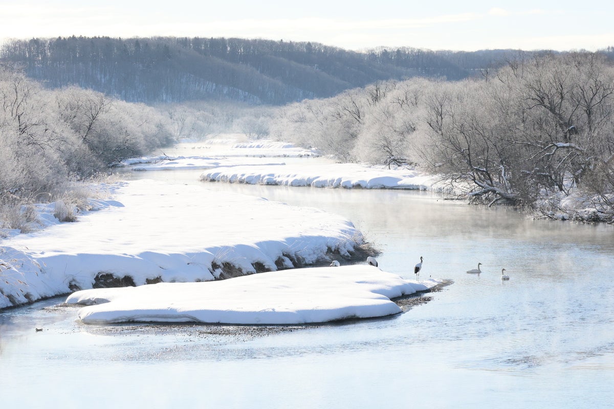 音羽橋からの風景。積雪期、多くのタンチョウが鶴居村に集まり、夜はここがねぐらとなる。