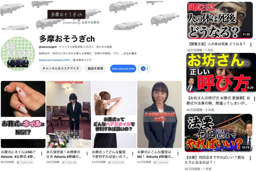 同社が運営するYouTubeチャンネル「多摩おそうぎch」では、1級葬祭ディレクターが週2回、葬儀の不安を解消する情報を発信。チャンネル登録者は地域を中心に急増中。今回のイベントもチャンネルと連動し、「知って得する終活情報」をオンライン・オフライン両面から届ける。