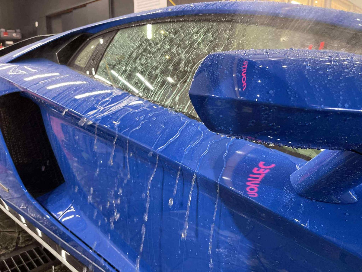 洗車機施工での最終課程のブローで、ほとんどの水滴はボディーに残っておらず、拭上げ作業が皆無と言っていいほど手間を省けます。