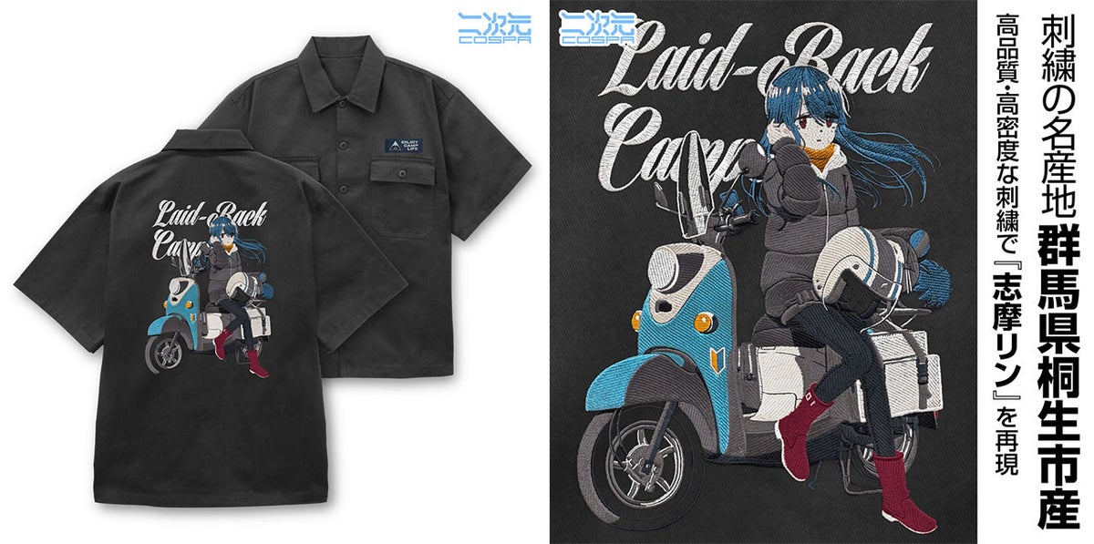 『ゆるキャン△ SEASON3』新グッズ!「描き下ろし 志摩リン 刺繍ワークシャツ バイクでひといきVer.」など二次元コスパから登場!イベント・モデル地先行販売も【株式会社コスパ】
