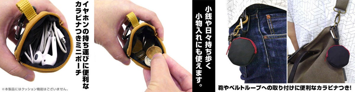カラビナ付きミニポーチ