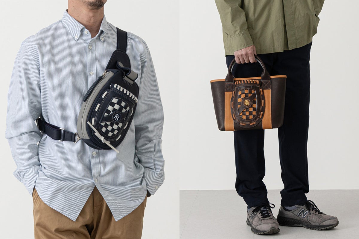 本革バッグブランドであり、野球グローブメーカーでもあるTRIONが仕立てたMLBグローブバッグ。人気のボディバッグとミニトートを各球団カラーで展開