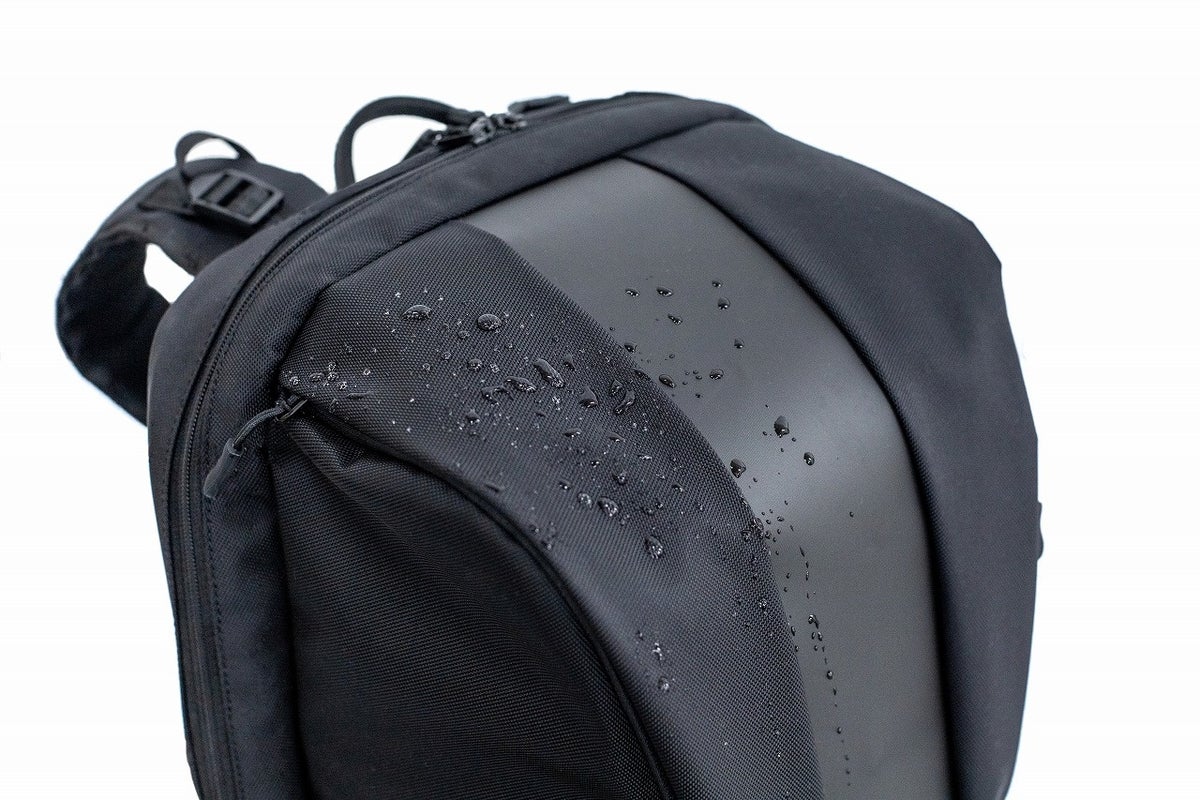 ショルダーストラップには特許出願中の「ドラフティ・ストラップ」を採用。サイドの通気口から湿気を逃がし、ムレを軽減します。内部には、高級ベッドパッドにも使われる日本製芯材「AQフロント」を使用。空気や湿気を横に流す構造で、通気口から効率よく湿気を排出します。背中や腰にも同じ芯材を使用し、快適な通気性を実現しています。