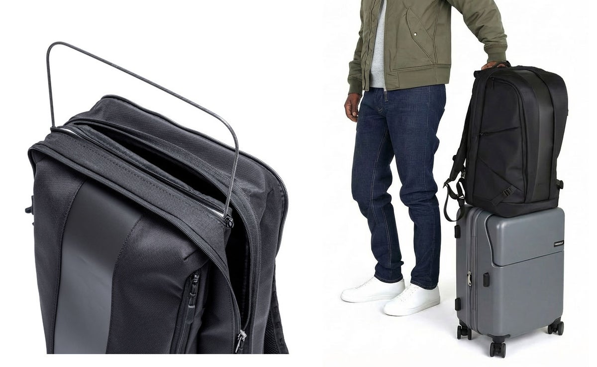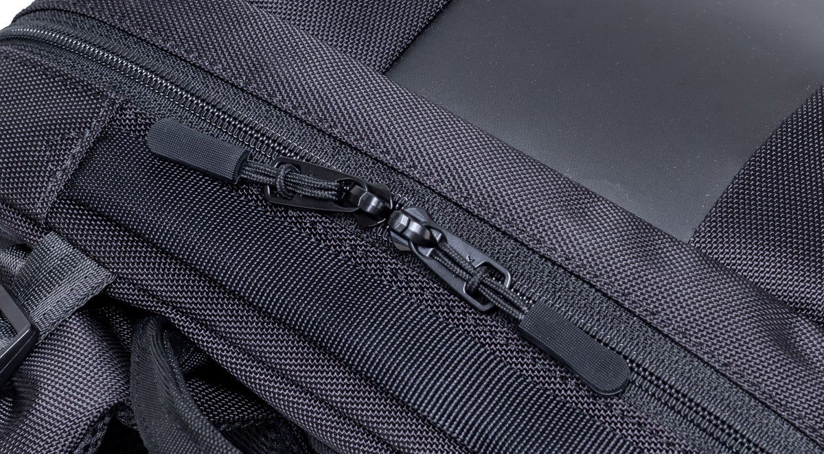 ビジネスモデルは、荷物の量に合わせて2段階にサイズアップする拡張ファスナー付きです。