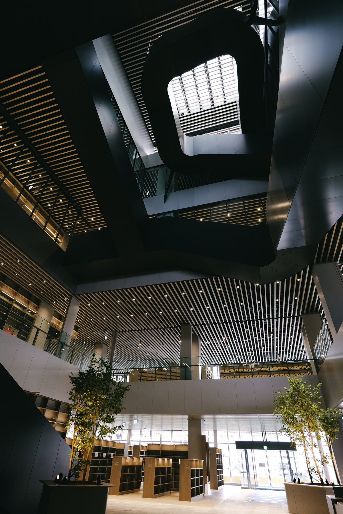 「KADOMADO」は市民が自由に使えるアクティビティの場です。この建物には、建物の外周部を屋上まで歩いていくことが可能な「スパイラルガーデン」と、建物中央の吹抜けに設置されて各階を繋ぐ「ギャラリーウォーク」という2つの動線が設けられています。建物の各階に点在する「図書館」と「生涯学習」を核とした様々な機能が、この2つのらせん階段をコアにして、屋内と屋外をシームレスに繋げています。