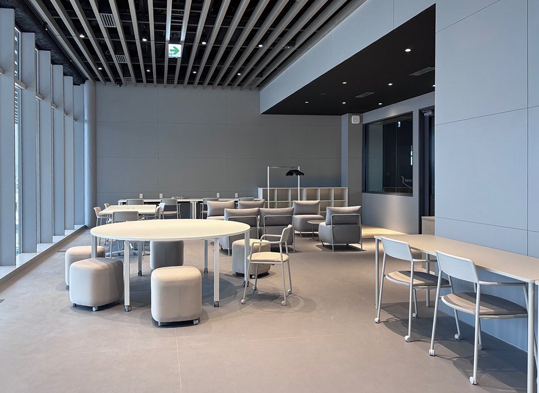 これから自習室にはイスが設置され、今はまだ空きの棚にも本がずらりと並びます。オープンまで楽しみにお待ちください。