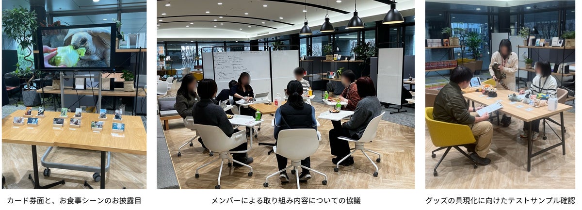 目的は、「丸井グループのフィンテック、小売、グッズ制作などのアセットを組み合わせて大好きな動物を応援するビジネスを立ち上げ、社会貢献につながる消費を拡大すること」。当初は、社内の動物好き社員のみで方向性などを協議していました。より多くの皆さまに喜んでいただけるビジネスにすべく、お客さまや園の運営に携わる方々など、動物に関わる多彩なメンバーのご意見を収集する過程で、取り組みへの賛同の輪が広がり、仲間が増えていきました。
