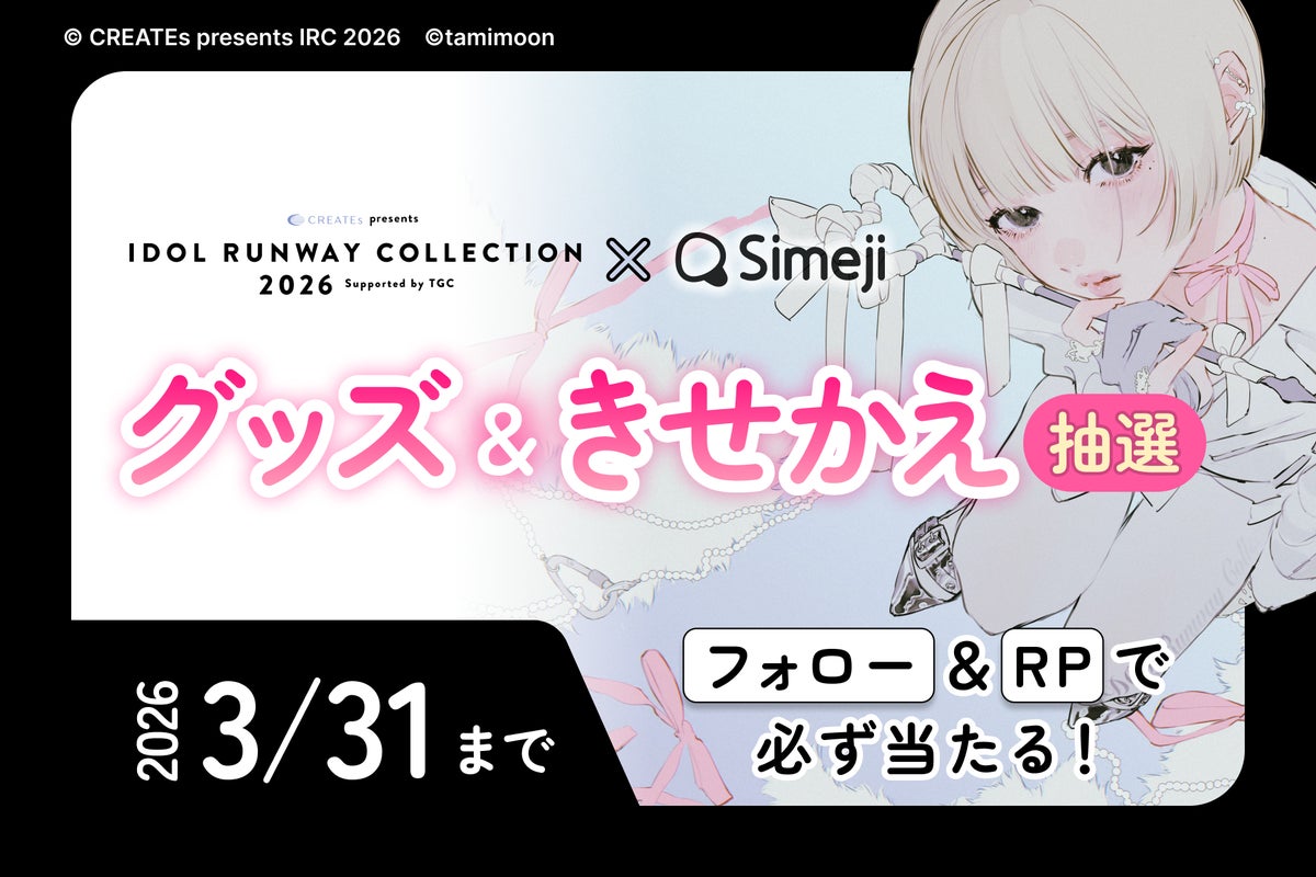 バイドゥ株式会社(本社:東京都港区、代表取締役社長:Feng Jiang)が提供するきせかえ顔文字キーボードアプリ「Simeji」(iOS、Android版)は2026年3月15日(日)に国立代々木競技場 第一体育館にて『CREATEs presents IDOL RUNWAY COLLECTION 2026 Supported by TGC』(以下、CREATEs presents IRC 2026)とのコラボを実施いたします。